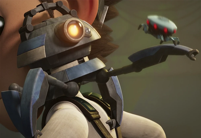 A long time later, in 232 BBY, Jedi younglings tracked 0G-LC down after hearing stories of him as a brave adventurer. While initially resistant to their visit, he ultimately let them onto the Star Seeker and told them of his past failures as a pilot droid. With encouragement and advice from the Jedi, 0G mustered up enough bravery to retake the pilot’s seat and fly through the asteroid field, successfully doing so and returning to Tenoo before deciding to continue his exploration mission.
