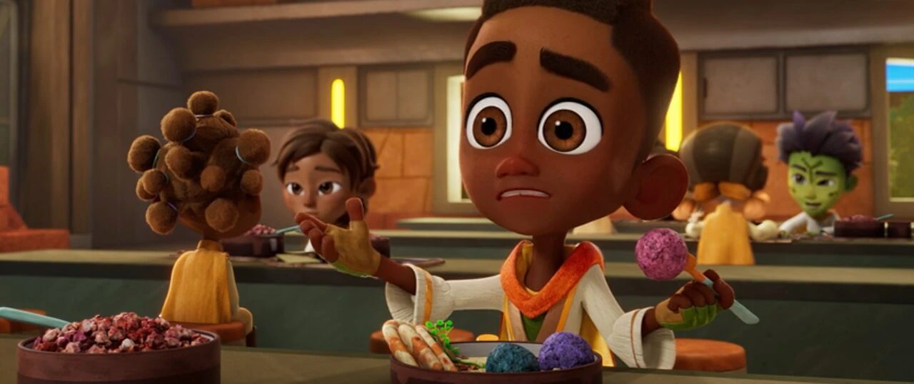 Brightstar is upset at the Jedi Temple cafeteria because he lost a game and accidentally flings a ball of paste onto Nubs’ plate. He apologizes, and Nubs accepts it, chewing the ball of paste. Solay comforts Brightstar by telling him that it wasn’t a competition, according to Master Zanna. She also praises his excellent lightsaber skills and his amazing forms. Brightstar is disheartened because he thought he was the best student and got defeated.