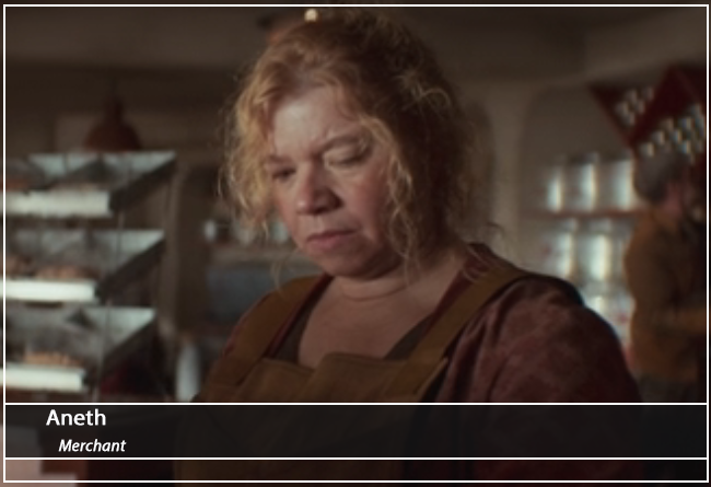 Shortly later, Perrin Fertha enters the room with his wife Mon Mothma, who has had her breakfast separately without him. Fertha is curious about Rael’s surprise. Mothma eyes the object which is wrapped in a white cloth and asks if it is a Chandi Merle. Fertha confirms it is the case and quips it was worth more than the house. Fertha says that they have two more nights to go. Fertha asks about Mothma’s so-called boyfriend, Tay Kolma. Mothma denies that she is in a relationship with Kolma, but Fertha does not believe her. Fertha tells Mothma that he was taken home drunk last night and warns her to be careful.