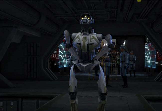 Background: Commander Aut-O was an ST-series military strategic analysis and tactics droid of masculine programming who served in the naval forces of the Confederacy of Independent Systems during the Clone Wars with the military rank of commander. In 20 BBY, he commanded a Separatist fleet from a Providence-class Dreadnought that was used to protect an encryption module that was key to a major Separatist operation. As a result, Aut-O’s fleet and flagship were infiltrated by a squad of Galactic Republic droids, who retrieved the module, thereby leading to Aut-O’s destruction.