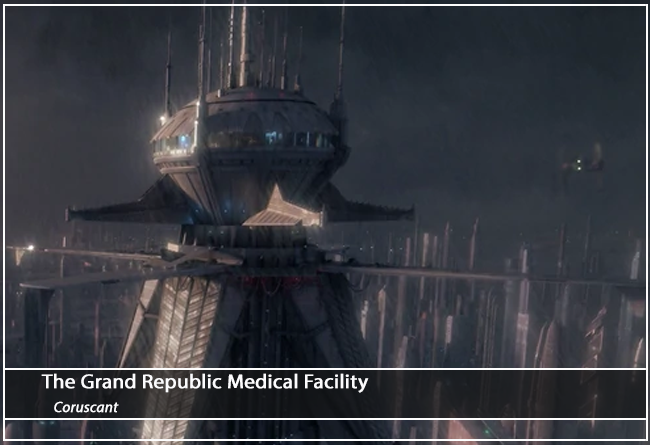 As his children are born, Vader is being rebuilt at the Grand Republic Medical Facility on Coruscant. Vader is given new legs, a new arm, mechanized lungs, and other “replacement parts.” He is dressed in black armor, a face mask is sealed tightly, and his helmet is fitted. Darth Vader begins to breathe through his mask. Most, if not the entire surgery is carried out in true dark-side form, with Vader wide awake and apparently unanesthetized, leaving him moaning, screaming, and writhing in excruciating agony.