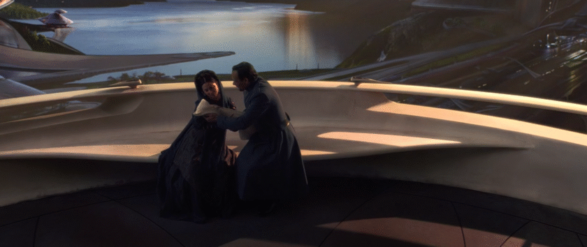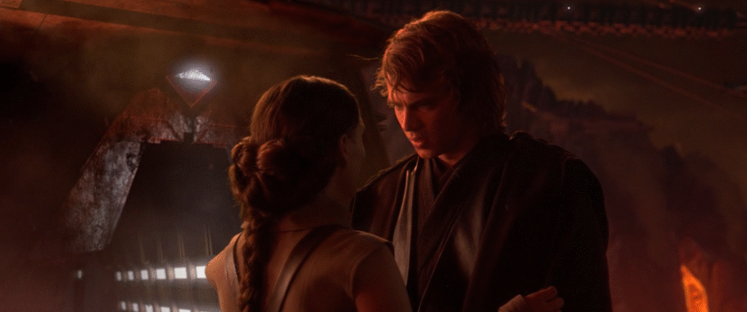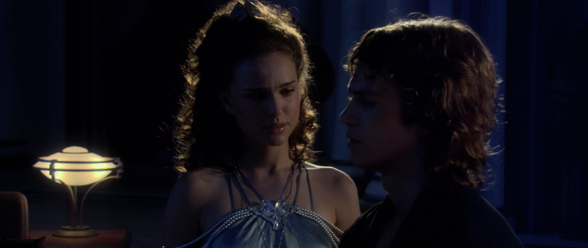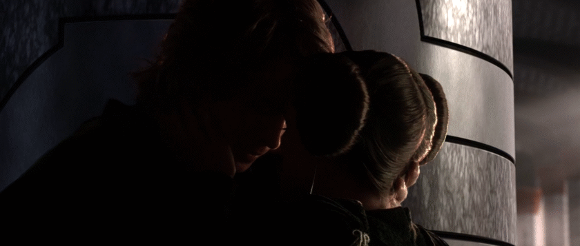 Later, on Coruscant, Anakin awakens in a panic, covered in sweat. He reveals to Padmé that he has been dreaming about her dying in childbirth, and believing that he can’t live without her, vows not to let this dream come true.