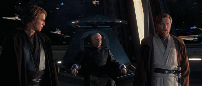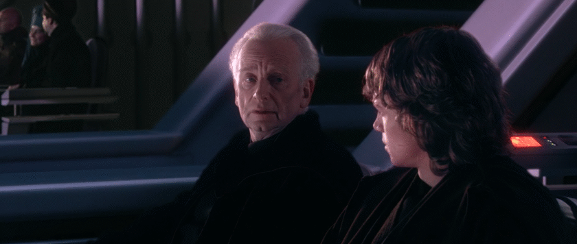 Chancellor Palpatine requests Anakin’s presence, and they meet in the Chancellor’s office. The Senate has granted the Chancellor further emergency powers, giving him direct control of the Jedi Council. Palpatine confides in Anakin his fear, distrust, and contempt of the Masters. He appoints Anakin to be his personal representative on the Council.