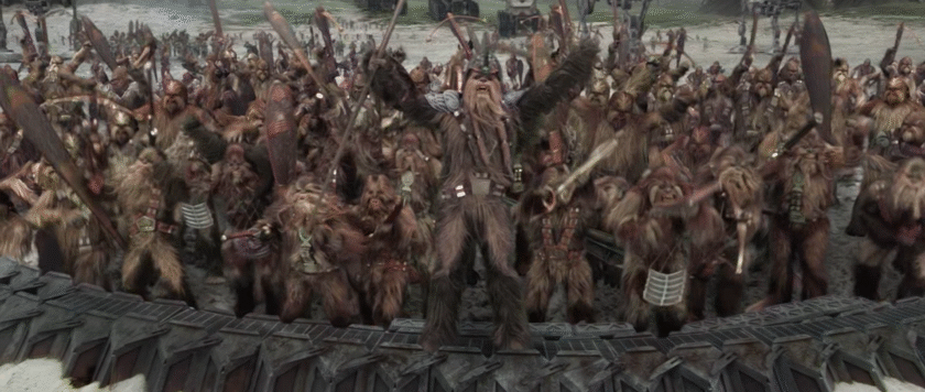 Across the galaxy, clone troopers turn against their Jedi Generals. As this happens, Yoda feels everyone who is dying. On Utapau, Kenobi is flung off a cliff by a blast from an All Terrain Tactical Enforcer, but he and Boga survive the drop, and Obi-Wan flees on Grievous’s hidden starfighter; on Mygeeto, Jedi Master Ki-Adi-Mundi is gunned down by CC-1138 and the 21st Nova Corps; on the lush, tropical planet of Felucia, Jedi Knight Aayla Secura is murdered by CC-5052 and his 327th Star Corps; on Cato Neimoidia, Plo Koon’s Jedi starfighter is shot down by Aggressive ReConnaissance-170 starfighters, sending it smashing into a clone staging area; and on Saleucami, Stass Allie’s 74-Z speeder bike is destroyed by CC-8826 and his wingman, riding BARC speeders. On Kashyyyk, Yoda is overlooking the ongoing battle as Commander Gree receives the order. He and his lieutenant attempt to sneak up to Yoda, but the aged Master senses their intent and beheads both clones with a slash of his lightsaber. Tarfful and Chewbacca help Yoda escape the planet.