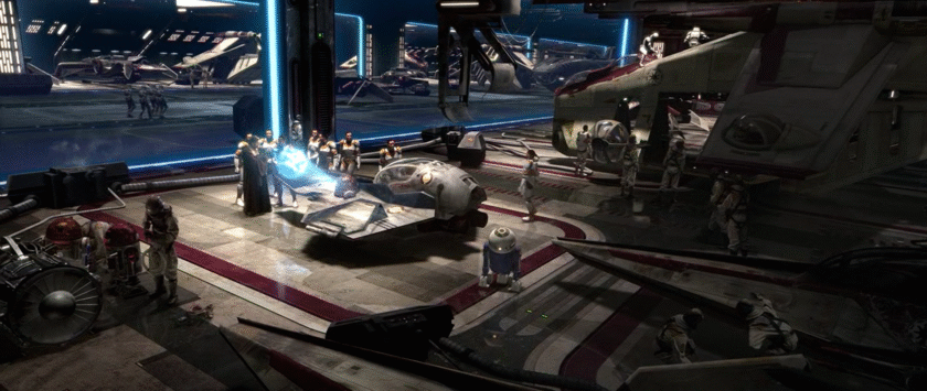 Anakin walks Obi-Wan to his Star Destroyer before he leaves. Anakin still believes he’d be needed on Utapau, and while Obi-Wan agrees, he also notes it might just be a wild Bantha chase. Anakin stops Obi-Wan and tells him that he knows he’s disappointed Obi-Wan and that he’s not been acting very grateful for the training he received. Anakin tells him he’s just been so frustrated with the Council lately, but that he does apologize. Obi-Wan calls Anakin strong and wise and tells Anakin he’s very proud of him and while Obi-Wan trained him since Anakin was a boy, he calls Anakin a far greater Jedi than Obi-Wan could hope to be. But Obi-Wan encourages Anakin to be patient and that it won’t be long before the Council makes Anakin a Jedi Master. The two bid each other farewell and Obi-Wan leaves for Utapau. Little do they know that this is the last time they will see or speak to each other as fellow Jedi and friends.