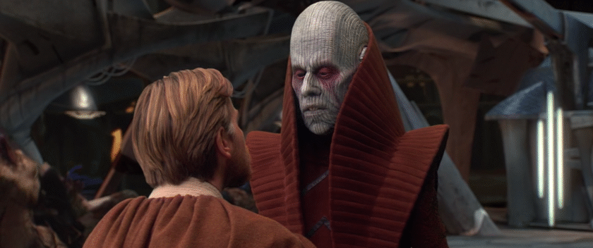 Elsewhere, Grievous, now both the political and military leader of the Separatists, arrives on Utapau, where Trade Federation Viceroy Nute Gunray, Geonosian Archduke Poggle the Lesser, Techno Union head of state and Foreman Wat Tambor and others on the Separatist Council remain in hiding. The General is contacted by Darth Sidious, who gives him instructions to move the Separatist leaders to a volcanic planet, Mustafar. He also explains that the war is almost over. Grievous is uncertain about this, given Count Dooku’s death. Sidious assures him that Darth Tyranus’s death and loss was necessary, for he would soon have a new apprentice: one far younger and more powerful.