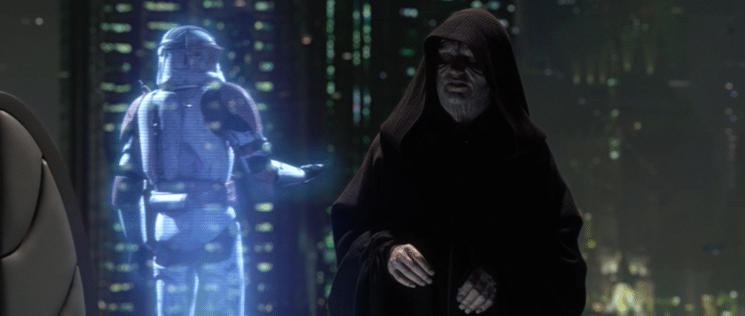 Meanwhile, from his office, Sidious broadcasts a command to the many clone trooper commanders spread throughout the galaxy: to execute Order 66, an action that is effectively set into motion.