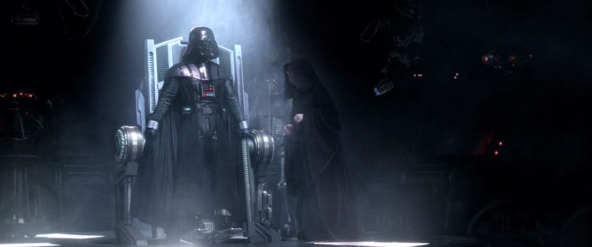 Vader is raised to a standing position, his surgery complete. Vader begins to speak through his vocabulator to the Emperor, asking about Padmé. The Emperor, seeking to cut Vader’s last tie to his old life and permanently cement the dark side in his heart, lies to Vader, telling him that he accidentally killed his wife while Force-choking her. His last shred of hope and love now gone and his mind broken by the realization he himself killed the person he wanted to save, Vader rips himself free of the operating table and unleashes a powerful scream of rage, shame, and grief through the Force, shattering the droids and equipment. Vader howls “Nooo!” in anger and despair, while the Emperor looks on with an evil grin.