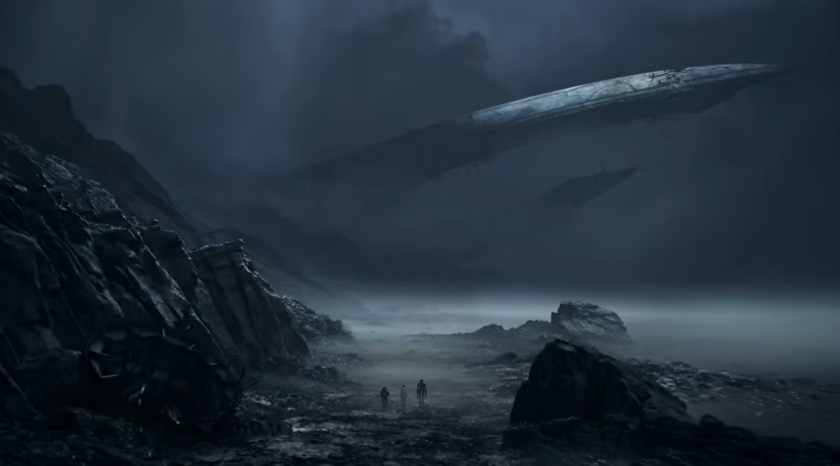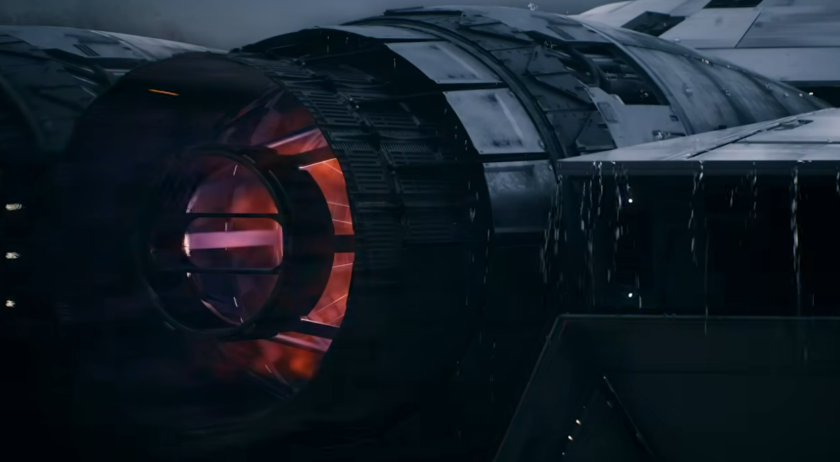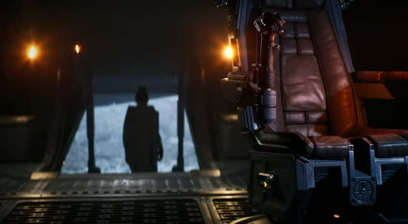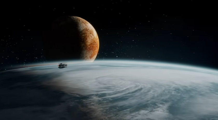 We open the trailer with a wide shot of a starship, a female is piloting the ship as it reaches its target location.