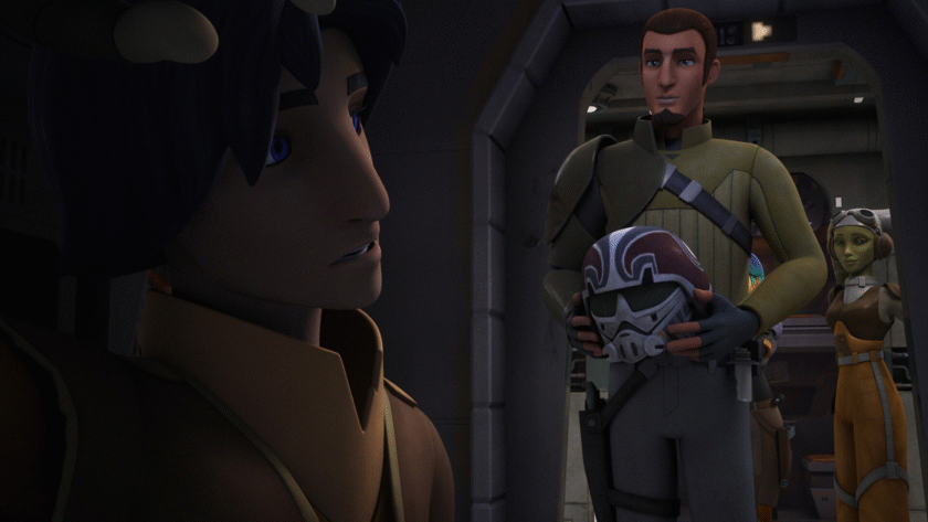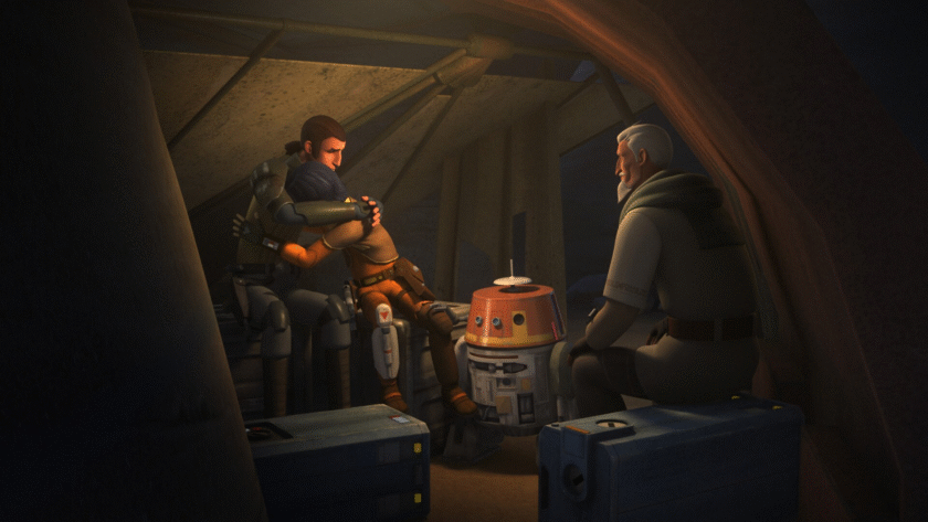 At Ryder’s hideout, Ezra notes that he seems familiar, asking if he knows him. Ryder comments that Ezra was pretty young back then, and explains that he used to be the Governor of Lothal, and was imprisoned by the Imperials for supporting the Bridgers’ broadcasts. He notes that he’s amazed Ezra is here, as Ryder was going to seek him out, but Ezra found him first. Ryder reveals that Ezra’s parents had heard his broadcast from Lothal’s Imperial Communications Center, recognizing Ezra from his words, and this had inspired them to stage a breakout at their prison. Ezra quietly asks if they’re dead, and Ryder confirms it. He explains that they were separated in the escape, and that the Bridgers refused to leave until everyone else had escaped, and they didn’t make it. Ezra begins to cry, and Kanan gives him a hug.