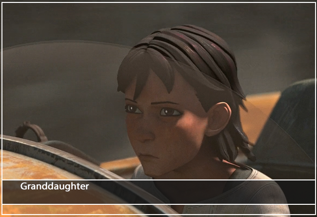 The girl brushes past Strata and wields a blaster. The old man says that labor is scarce for their farm. While they are far away from the Galactic Empire, the old man says that water is scarce in this region and dangerous to retrieve it. He explains that the raiders got him the last time. Ventress and Strata turn away and wish the old man the best of luck. As they exit, the old man offers the services of his granddaughter in leading them to Cipher Canyon. He says that it is not far from the spring where she can collect water. The old man asks Ventress to protect his granddaughter as a fellow warrior.