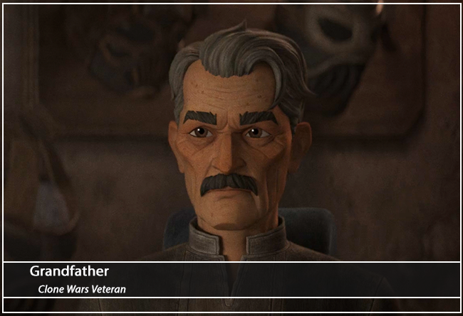 The two travelers find themselves facing an elderly human man on a repulsorlift chair. He is familiar with Ventress and orders his granddaughter to fetch the travelers some water. The granddaughter protests they have little water to share but complies and fills Ventress’s canteen. Strata and Ventress discover several medals on display on the wall. When Ventress asks if their hosts are farmers, the old man says that it has been a change for people like them.