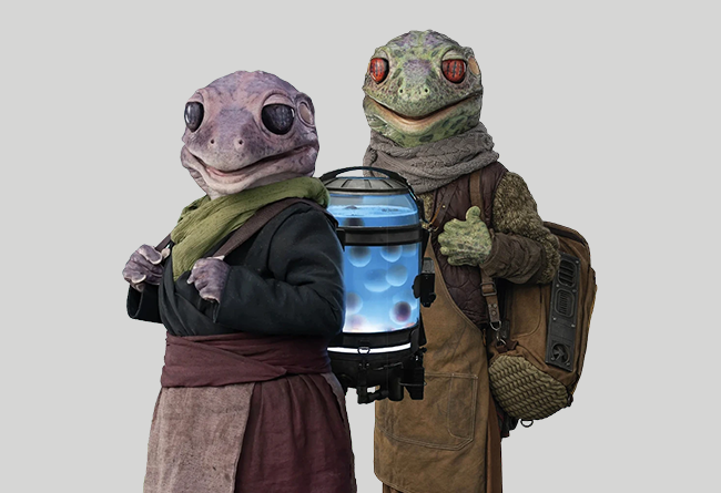 The Rybet were an amphibious, frog-like, sentient species that lived in the galaxy. One Rybet was killed in Oga’s Cantina on Batuu during the Clone Wars. One was also killed on the Elegencia as he got shot for doubting Pan Eyta’s decisions. The Rybet were considered an ancient species and had long since scattered across the galaxy, resulting in numerous subspecies such as the Querm Rybet from Quermia.