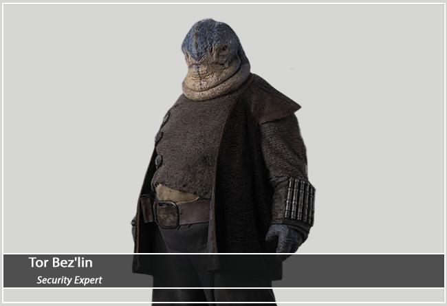 Jedi Knight Yord Fandar and his Padawan Tasi Lowa enter the bridge. They tell the Neimoidian captain they are looking for a former Jedi named Osha Aniseya. Another officer responds that they are a cargo ship and do not carry passengers. Fandar says that the Jedi know that Osha works as a meknek, who does freelance outer ship repair. The officer denies hiring mekneks, but Fandar raises his hand and gestures. A female Neimoidian officer responds that Osha is bunking at Bunk 23 on the sub-level of the ship.