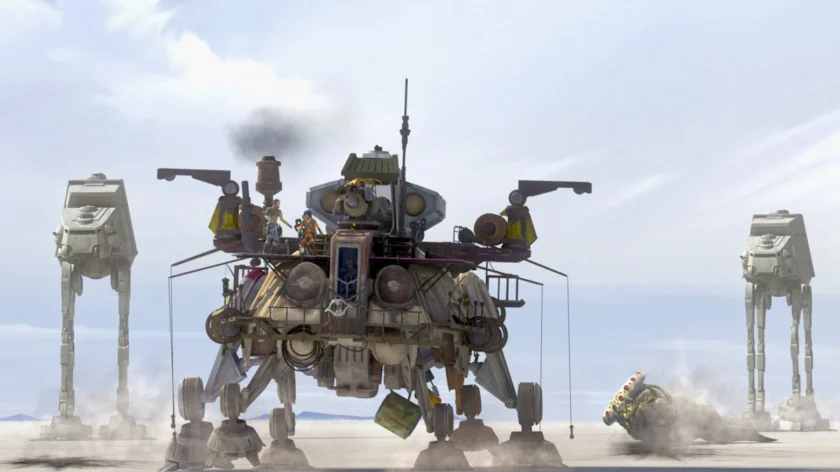 The clones travel through the burning sea. At daybreak, they reach the landing platform where the Havoc Marauder is waiting. Omega and the Bad Batch watches the burning wreckage of Tipoca City one last time. Tech says that they should leave before the Empire’s scouts show up. Wrecker asks Crosshair if he is coming with them. Crosshair says that none of this changes anything. Hunter tells Crosshair that he offered them a chance and that this is his chance.