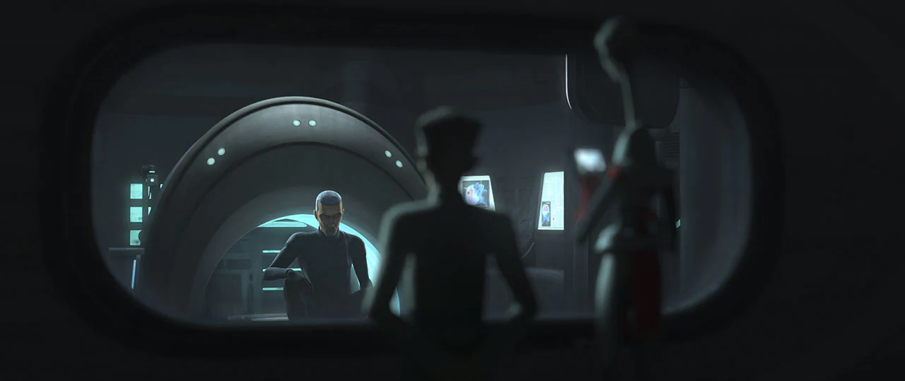 On Kamino, Crosshair undergoes a scan, and AZI-3 informs him his vitals are at optimum levels. Governor Tarkin and Nala Se watch through an observation window. Nala Se notes that Crosshair is responding well to the procedure, and Tarkin replies he hopes it stays that way. Vice Admiral Rampart enters the room, and Tarkin congratulates him on his chain code initiative on Saleucami. Tarkin asks about the progress of Project War Mantle, and Rampart confirms the new recruits are ready to begin training under their new commander.