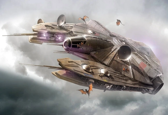 Background: The YV-560 light freighter was an exploration class freighter made by the Corellian Engineering Corporation. Similar in design to CEC’s YT-1300 light freighter, the YV-560 was slightly smaller, with a 30.1 meter length and a 22.4 meter saucer diameter.